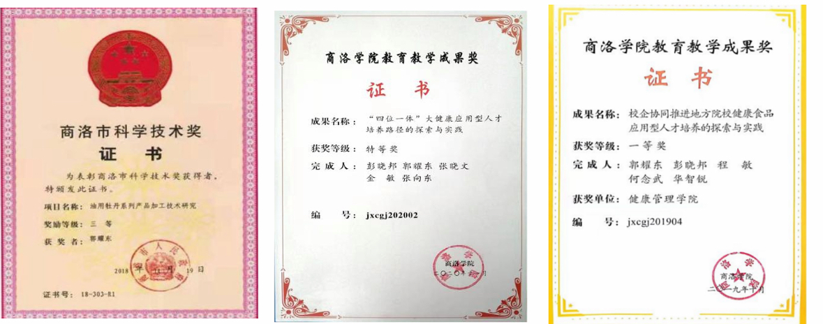食品卫生与营养学专业依托校企共建的陕西省“四主体一联合”秦岭健康食品配料及核桃产业校企联合研究中心,聚焦地方健康食品产业发展和食品安全卫生需求,积极开展科学研究和技术服务工作,主动融入秦创原创新驱动平台建设,建有商洛市秦岭特色食品营养因子大数据挖掘与创新利用创新团队和秦岭良食药食同源健康休食品研发与产业化示范团队。近几年,本专业教师主持各级各类科研项目50余项,荣获市级科学技术奖3项,公开发表论文60余篇,其中SCI、EI收录10篇,编写教材1部,专利授权11件。