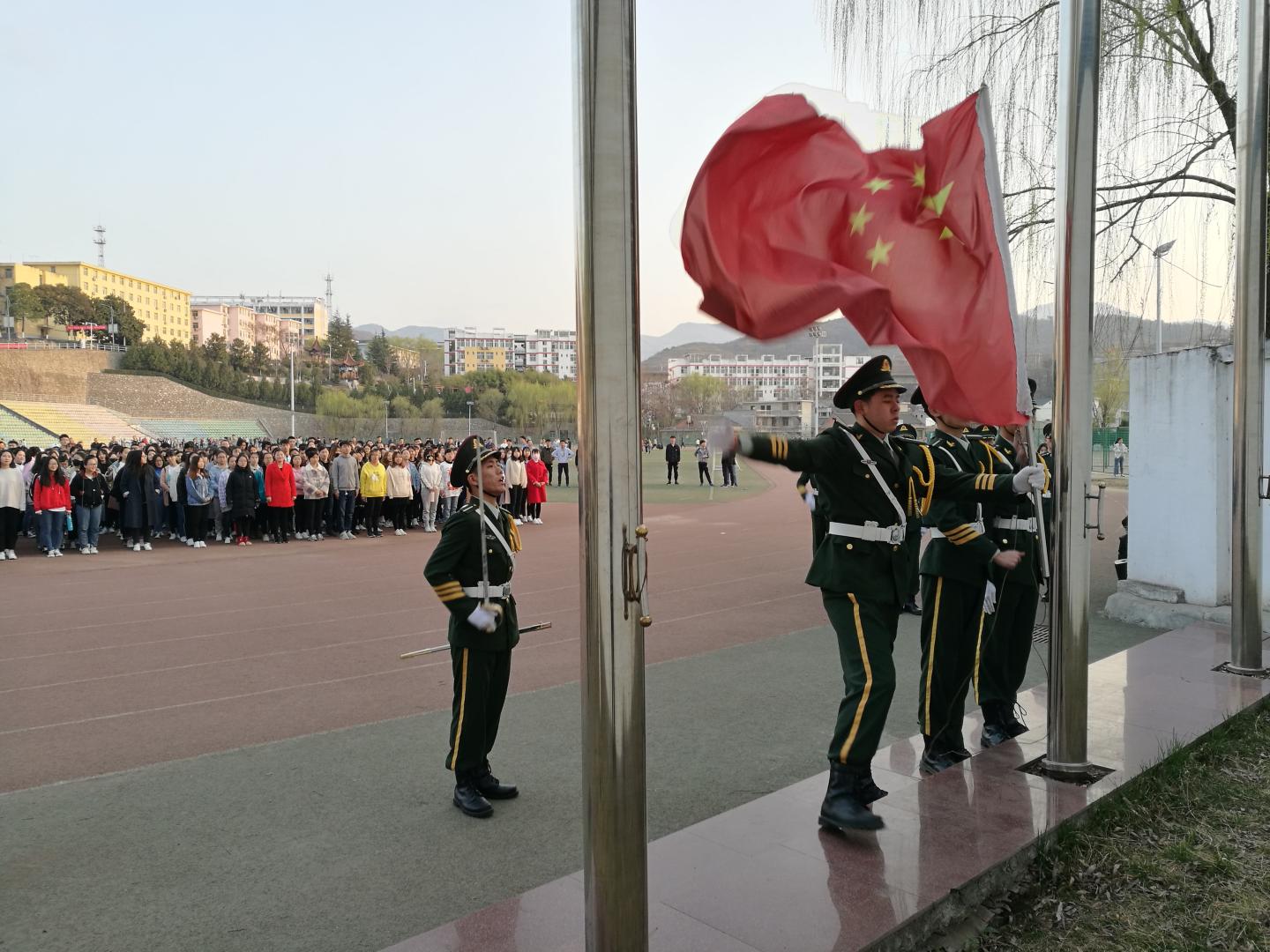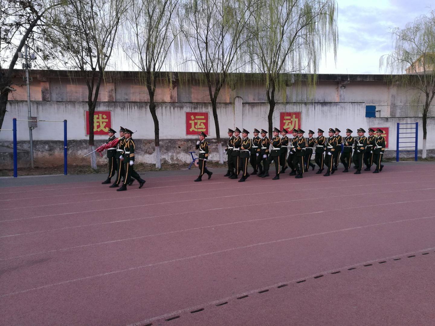 伴随着初升的太阳,升旗仪式正式,国旗护卫队队员保持整齐的队形,步伐一致,齐头并进。当国歌奏响,五星红旗冉冉升起,在场全体师生庄严肃穆,向五星红旗表达了崇高的敬意。
