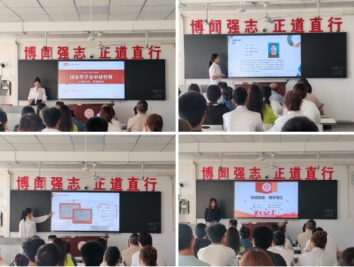 会上,上一届国家奖学金获得者王桂芳同学分享了她的心路历程和宝贵经验,号召学弟学妹们努力学习,提升自我,力争上游。经个人申报、班级推荐、年级专业初审,共有8名员工入围现场答辩,大家分别从思想素质、学业成绩、综测量化、校园活动、社会实践以及所获荣誉奖励等方面进行陈述,展示了他们获得的成绩和丰富的校园生活,经评委现场评议,评选出了国家奖学金的拟推荐对象。