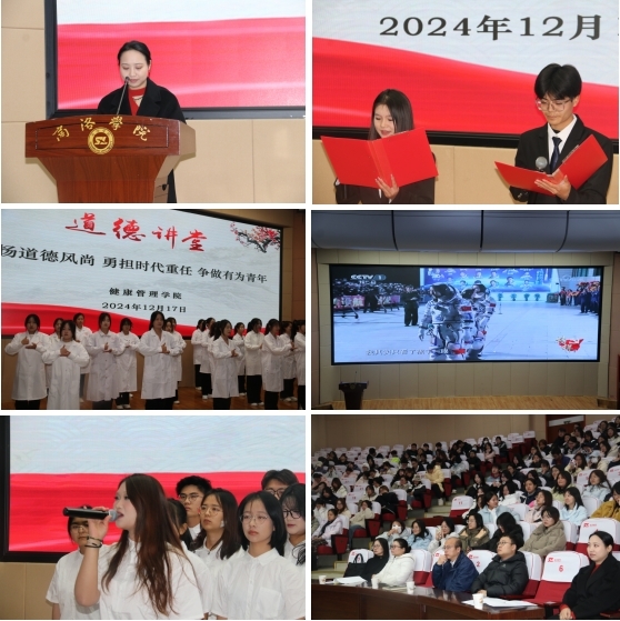 活动分为表演一场节目、聆听一个故事、观看一段经典、分享一段感悟四个阶段。表演一场节目:主要由员工的手势舞表演《一起向未来》、合唱《我爱你中国》和齐声诵读《月光下的中国》,带领青年员工在舞蹈、歌声和文字诵读中,感受国家的强盛,奋进的力量;聆听一个故事:由教师代表黄笛为大家讲“真实诚信,立人之本”的故事。聆听教诲,在教诲中让我们一起感怀师长、感恩父母、感谢亲朋好友和同学;观看一段经典:共同观看了【榜样7】王亚平---为中国航天事业奋斗终身的追梦人,短片中一幕幕温馨、感人的画面,激励青年员工勇担时代重任,争做有为青年。分享一段感悟:在聆听了故事、观看了短片后,由心理学2202班王桂芳同学分享一段个人感悟,号召同学们从我做起,从小事做起,从现在做起,多一份责任与担当,博闻强志,正道直行。