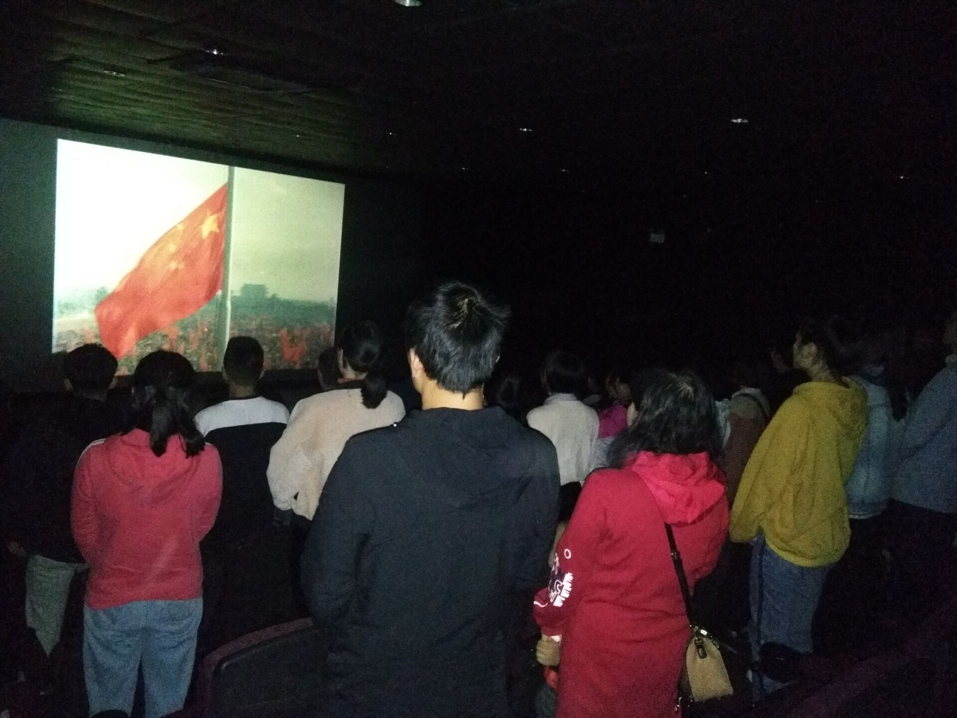 《我和我的祖国》以七十年国庆献礼为主题,分别以《前夜》、《相遇》、《夺冠》、《回归》、《北京你好》、《白昼流星》和《护航》七个故事作为主题,讲述了新中国成立七十年间普通百姓与共和国最难忘和激动人心的7个瞬间。7个故事,从个体出发,聚焦点放在一个个中国人身上,影片所呈现的真实场景让每一个中国人感到自豪和骄傲,在场教师与员工纷纷潸然泪下,尤其是开国大典五星红旗升起的那一刻,全体师生都无比激动。
