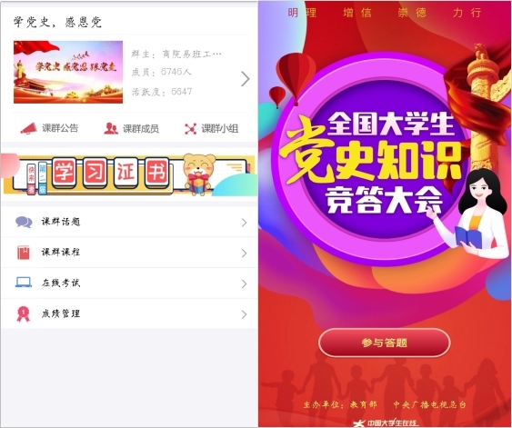 在全国老员工党史知识竞答“千校员工云答题”中员工党支部主抓员工党员及积极分子,坚持高标准严要求,力求答题见实效。在易班“学党史,感党恩”答题活动中,以班级为依托,由各班团支书积极动员、集中组织并完成本班答题统计,确保答题全覆盖。最后,支部结合公司实际,两次答题活动各评出一等奖两名、二等奖四名、三等奖六名。