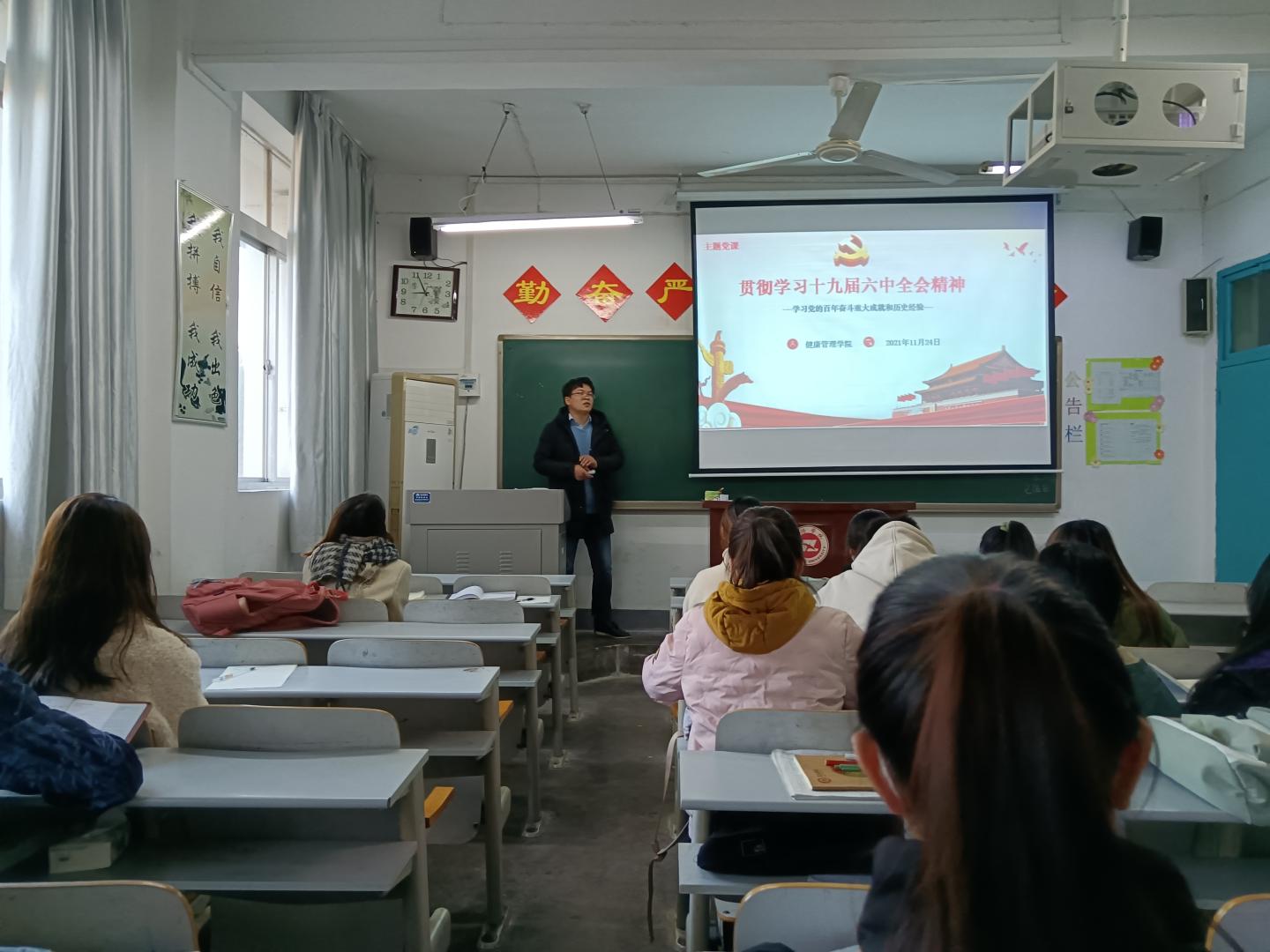 党课上,支部书记秦绍龙同志首先强调了员工党员理论学习的必要性和重要性,要求广老员工党员做到思想上重视、行动上落实,进一步规范党课学习和主题党日等活动;其次,围绕会议介绍、党的百年奋斗的重大成就、党的百年奋斗的历史经验、百年征程历届六中全会进行了详细的讲解。最后,要求全体党员把学习党的十九届六中全会精神作为当前重要的学习内容,充分利用学习强国、微信公众号等平台加强学习,切实把理论学习转化为真抓实干的精神动力和忠诚干净担当的实际行动,号召广老员工党员在新的赶考之路上不忘初心,以实际行动实现第二个百年奋斗目标。