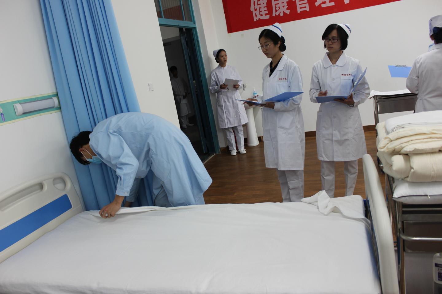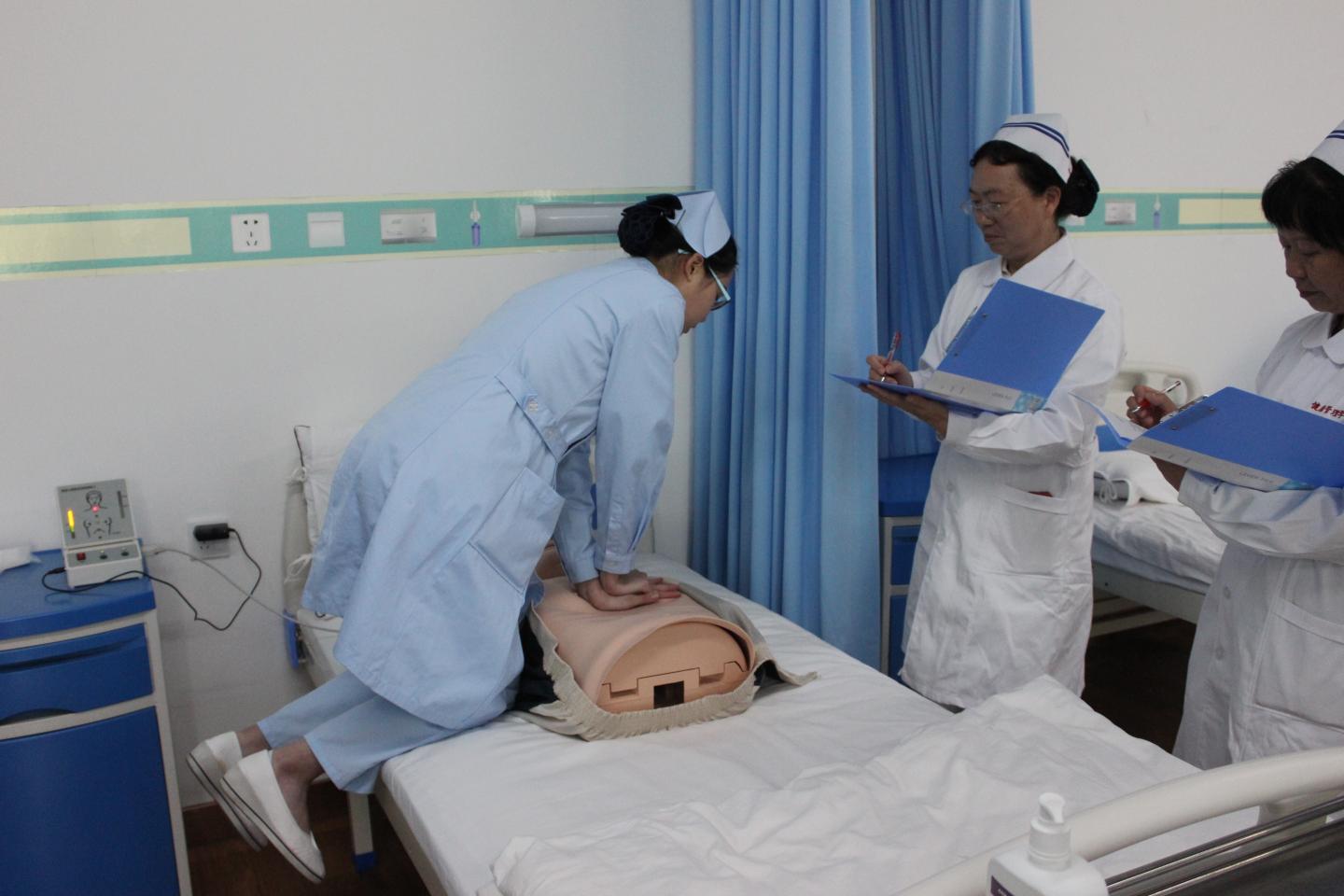 与去年不同,本次大赛设大二组与大三组两个级别,分别在5月15日和5月22日两日进行。大二组主要是单人单项的操作比赛,共有心肺复苏、无菌操作、铺备用床三个比赛项目;大三组的比赛模式参考全国护理专业本科临床技能大赛,参赛小组随机抽选临床案例后在规定时间内完成案例讨论及作答,并根据案例所需完成两项首优的护理操作项目。比赛难度明显增加,重点考核的是选手之间的团队合作精神、临床决策思维及综合操作技能。