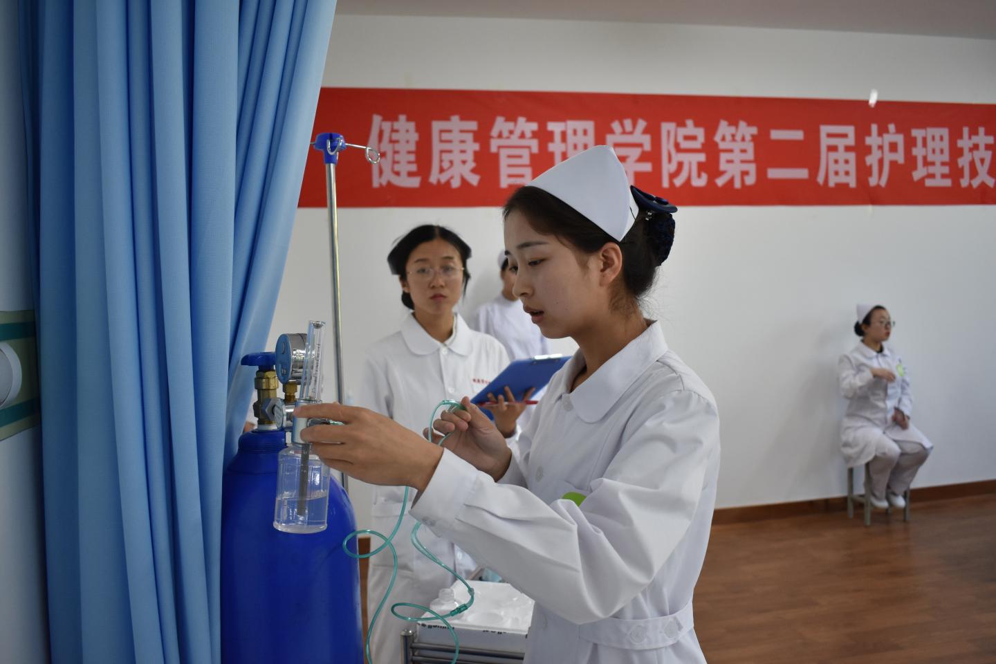 比赛现场,选手们谨慎认真、有条不紊,动作娴熟敏捷,充分展现出了白衣天使应有的精神风貌。
