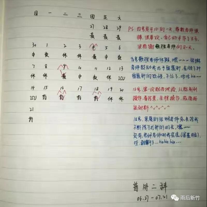 从员工转变成一名实习护士,离不开普外二科的老师们对我的谆谆教诲。临别,对充满温馨的普外二科充满不舍。我会记得笑起来很好看的护士长李晓帆老师,记得叫我“丫头”的余磊老师,叫我“小徐”对我特别好的燕维老师,闹了乌龙以为我叫“徐佳”的刘老师,叫我“宝宝”和我聊天的君妍老师,还有让我克服对留置针恐惧的心态超级好的张琳老师。