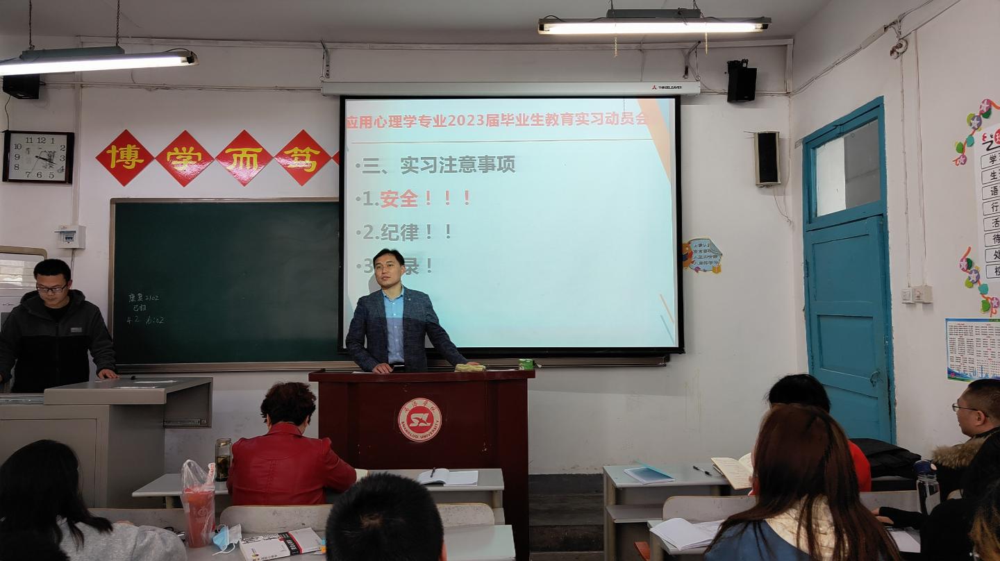 动员会上,梁丰结合《伟德victor1946应用心理学专业2020版人才培养方案(修订版)》、《伟德victor1946实践教学管理规定》、《伟德victor1946员工实习管理规定》和《伟德victor1946员工实践教学安全管理办法》的要求,介绍了本次教育实习的具体安排。