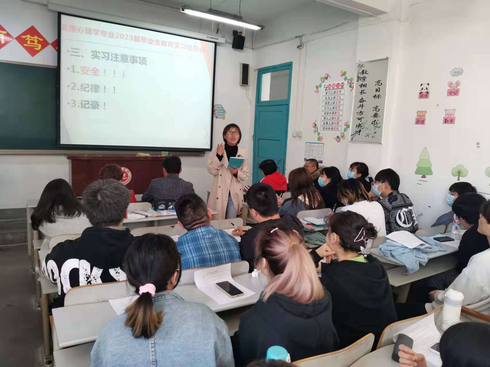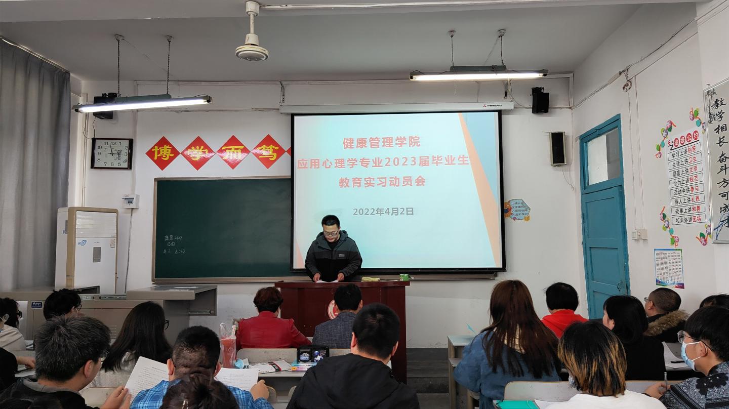 根据公司毕业生实习相关要求和公司工作安排,4月2日我院召开应用心理学专业2023届毕业生教育实习动员会,62名实习生将奔赴商洛中学、商洛市小学等7所中小公司,开展为期12周的教育实习。公司党总支书记鲁绵茸出席会议并讲话,2023届应用心理学专业全体毕业生、实习指导教师、辅导员参加动员会,会议由心理学系主任梁丰主持。