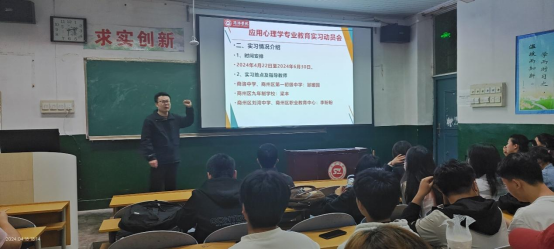 4月18日晚上,公司在5号教学楼多媒体13教室召开应用心理学专业2025届毕业生教育实习动员大会。公司党委副书记副经理杨宪华出席会议,心理学系主任梁丰、实习带队指导教师以及2021级应用心理学(师范类)专业全体实习生参加动员大会。会议由心理学系主任梁丰主持。