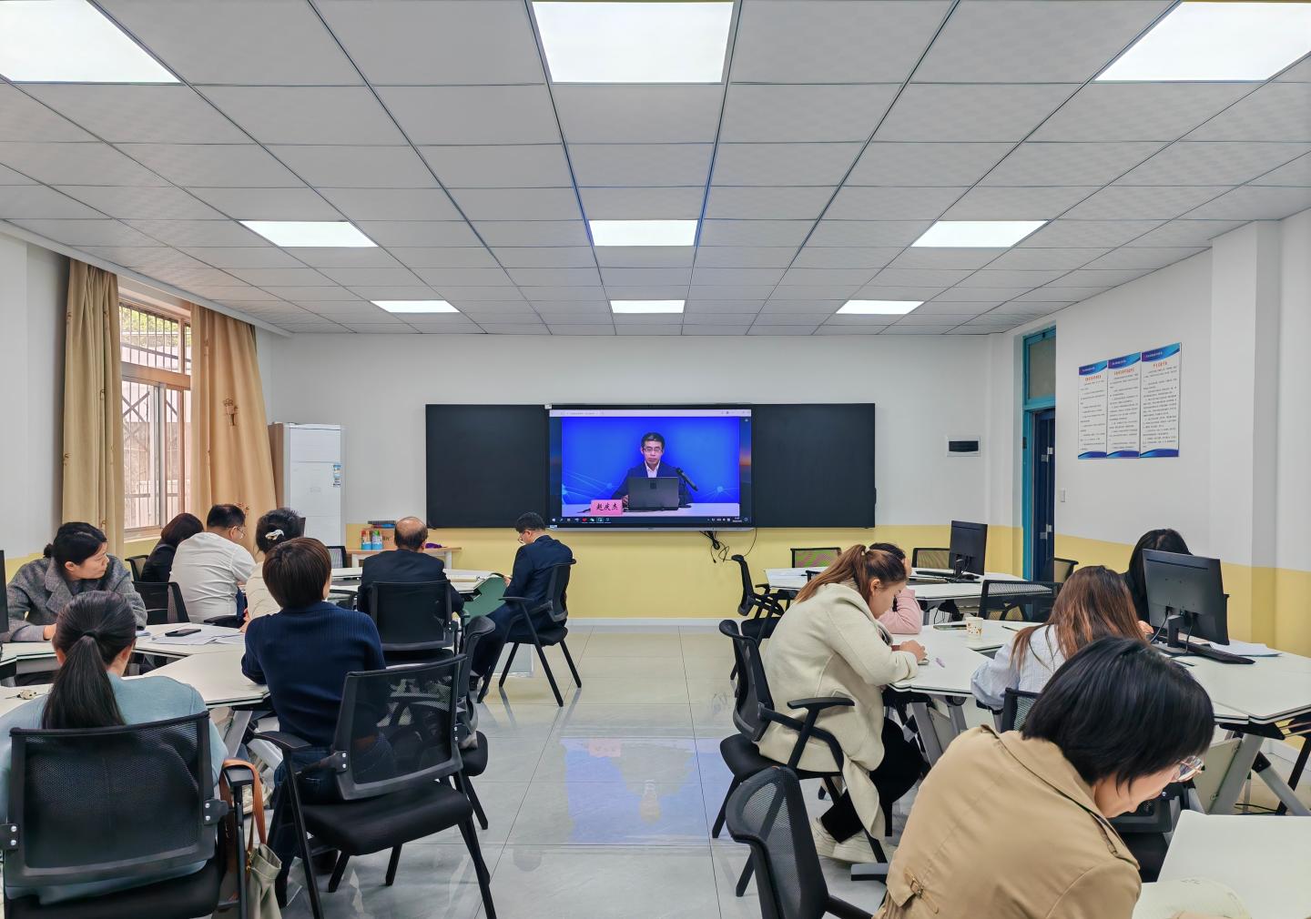 全体教职工认真聆听讲座,并深刻体悟讲座中指出的教育家精神的核心在于以员工的全面发展为宗旨,尊重员工的个体差异,关注其身心健康与品格塑造;教师应坚定理想信念,紧跟时代步伐,探索教学方法革新,要心怀“国之大者”将家国情怀融入教学,将个人成长与教育强国目标结合,在平凡岗位上成就不凡。