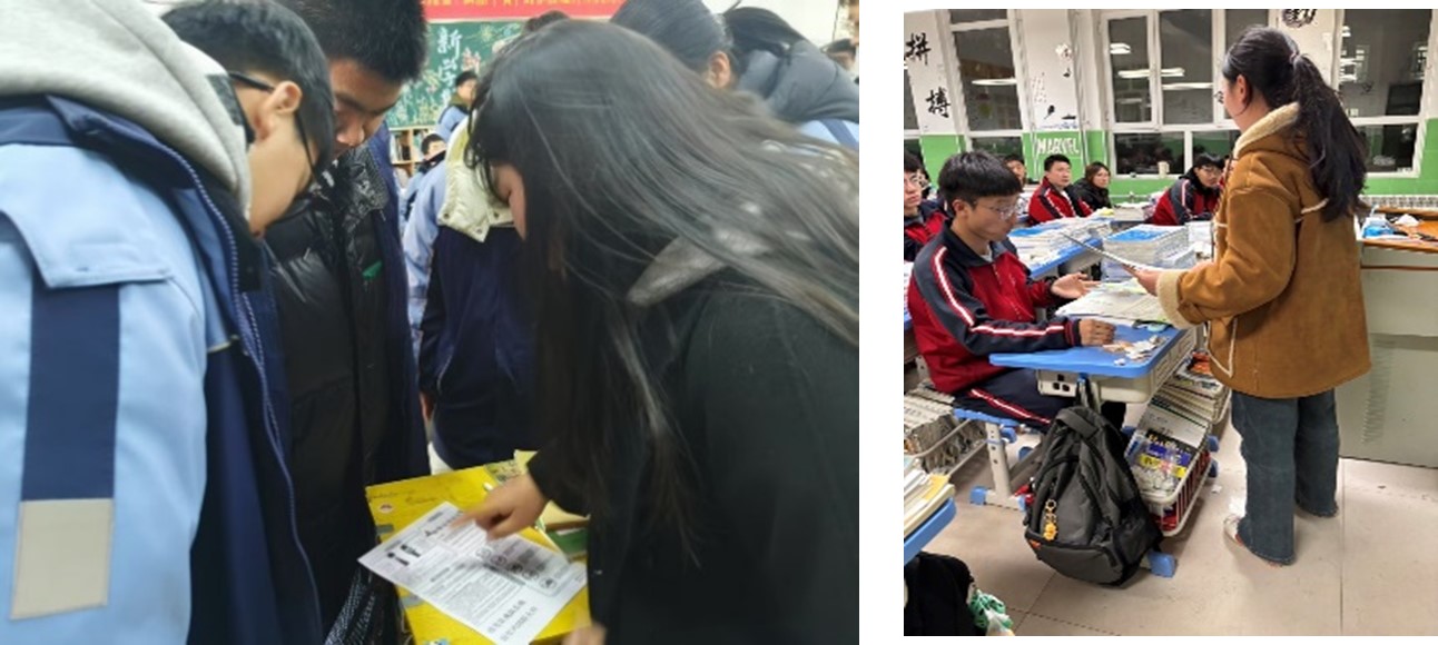 “回访母校,筑梦引航”寒假社会实践团队参加了由陕西省西安市华清中学组织的母校回访活动。团队的成员通过互动交流、学习资料分享等形式,全方位展示了丰富多彩的老员工活,向高中师生展示了伟德victor1946的综合实力和近年来的招生政策。赵艺熙同学详细介绍了伟德victor1946的学科特色、团队力量和校园文化,在互动环节中,耐心解答高三学子关于专业选择、高考复习技巧等方面的问题。王怡彤同学表示:“回到母校,看到熟悉的老师和充满活力的同学们,倍感亲切。希望通过我们的分享,能让他们对老员工活有更清晰的认识。”